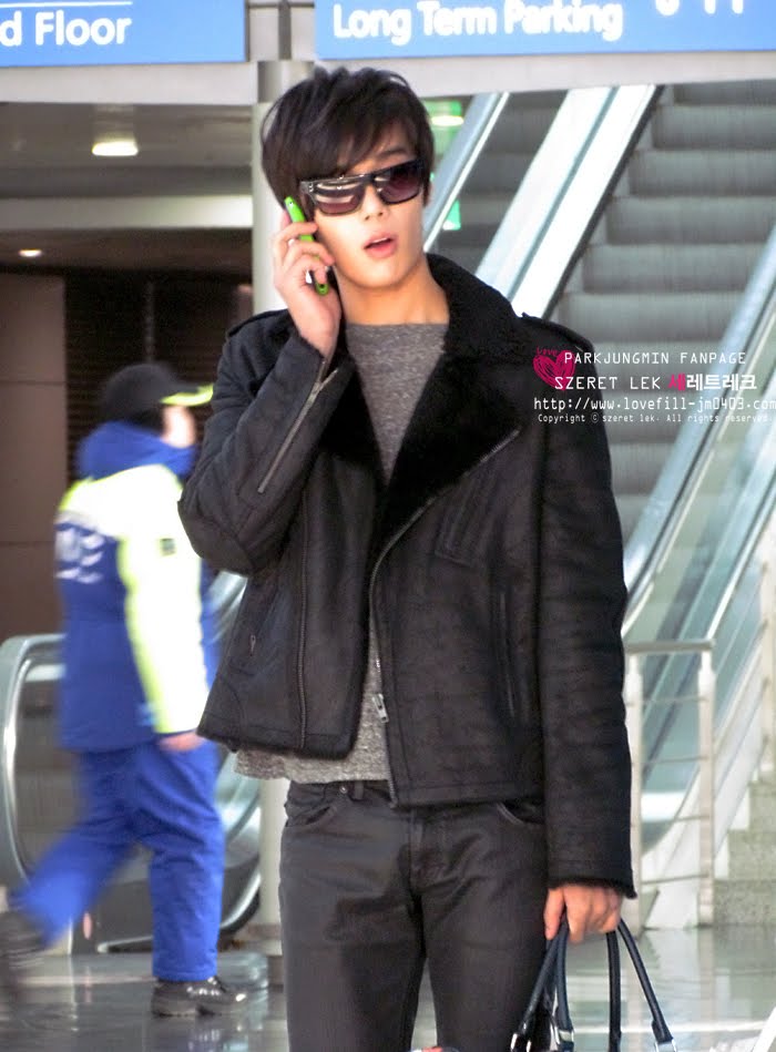 Omo! I love JM's hair like this! Short! He looks so much more manly and handsome! The sexy charisma and king of pout strikes again! Kekeke. LOL at him looking bored squatting and pouting while waiting at the airport. Can't help but think if he had his members with him, he would probably be having fun teasing Maknae or bothering the other boys. Haha!